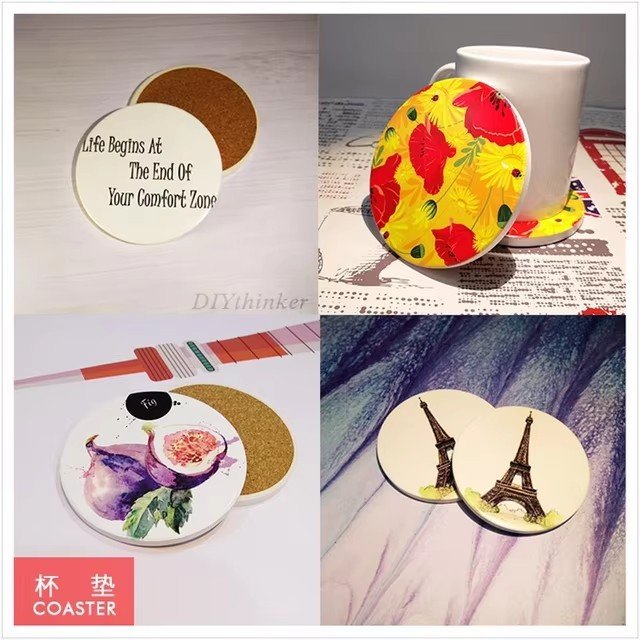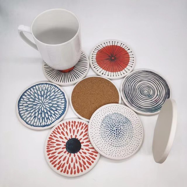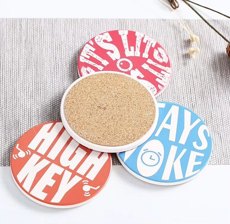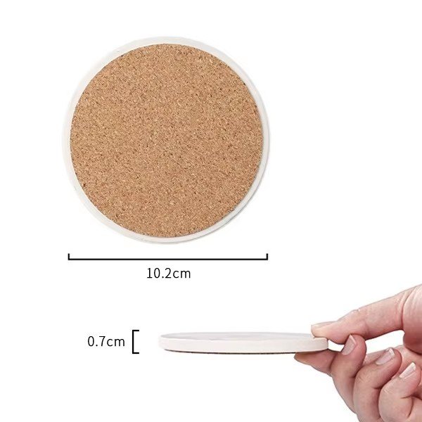 slip-resistant water absorbent ceramic coaster with cork back